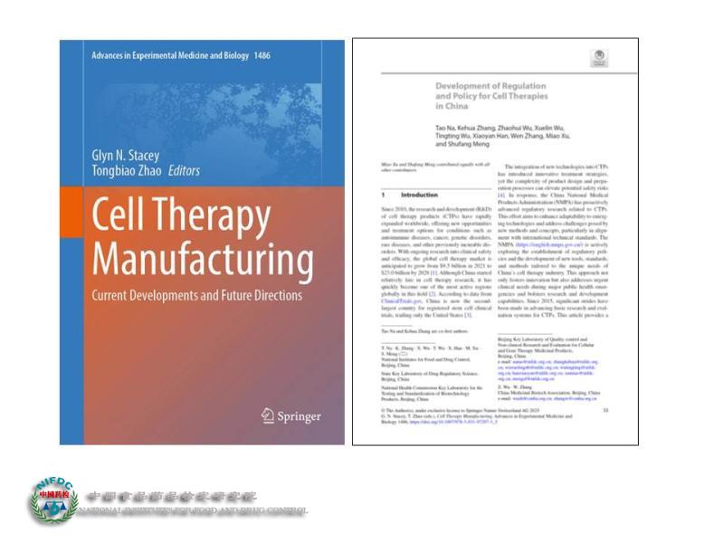 近日,中检院受国际干细胞库行动计划(ISCBI)协调人邀请,在《Advances in Experimental Medicine and Biology》专题专著“Cell Therapy Manufacturing”,发表了题为“Development of Regulation and Policy for Cell Therapies in China”的综述文章,系统介绍了我国细胞治疗产品监管政策和质量评价体系的总体情况。